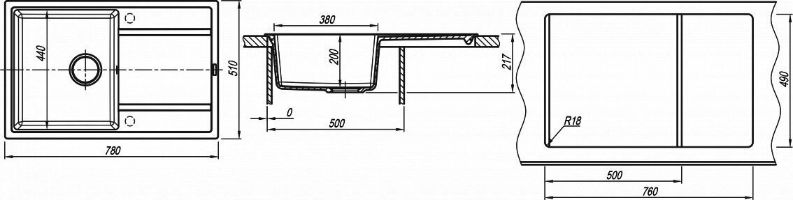СохранитьВрезная кухонная мойка 51 см, FLORENTINA Липси-780 Чёрная (20.270.C0780.102) интересное: