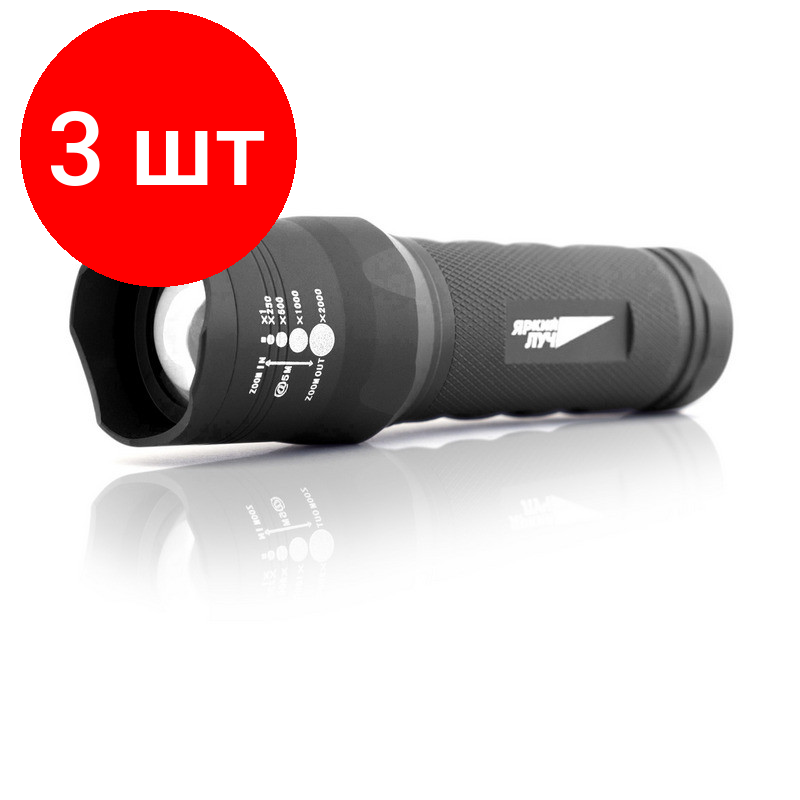 Комплект 5 штук, Фонарь яркий ЛУЧ T4 Focus v.2 алюмин. корпус, 300лм, 3 реж., 3xAAA