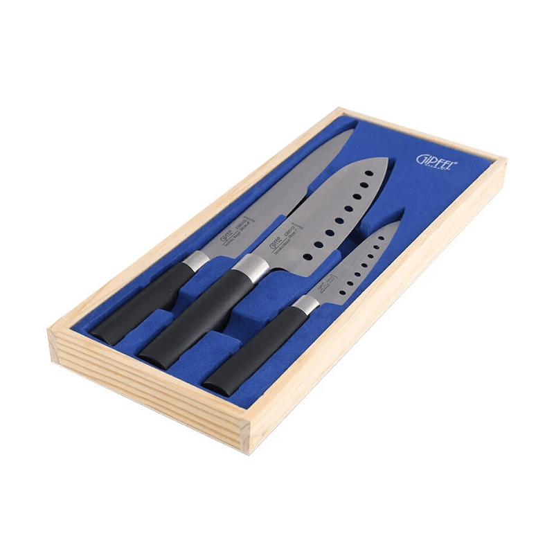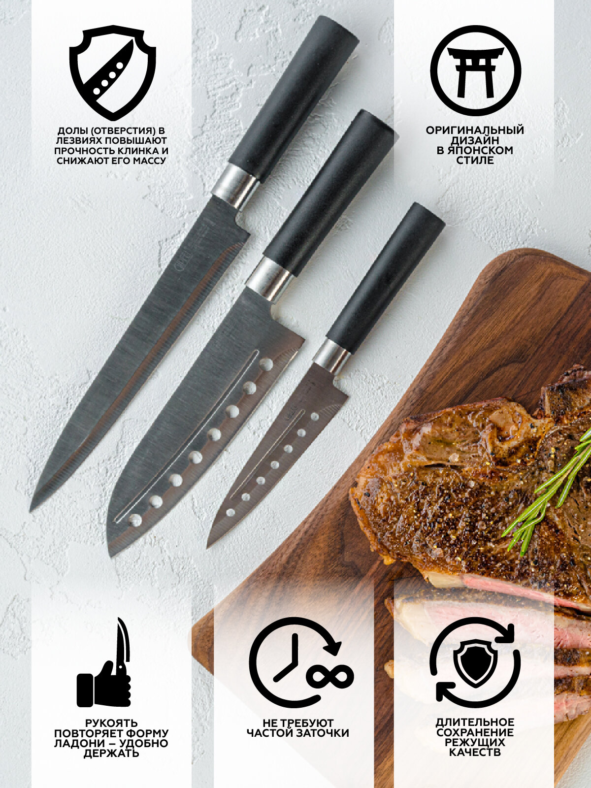 | Типы ножей в наборе | нож сантоку, разделочный нож, универсальный нож |