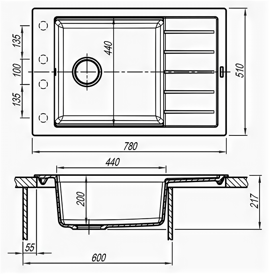 Мойка кухонная Florentina ЛИПСИ-780 P 780х510х217 Антрацит