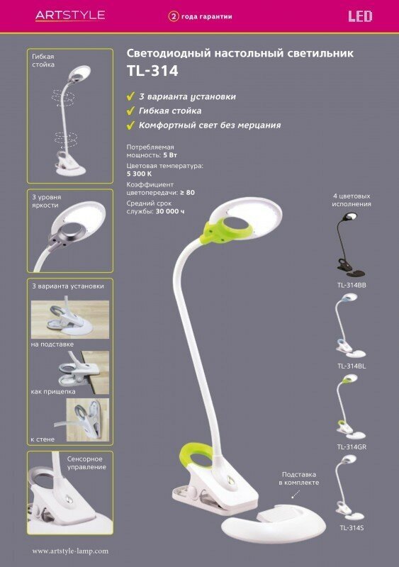 TL-314S, серебристый, настольный светодиодный светильник с креплением-прищепкой интересное: