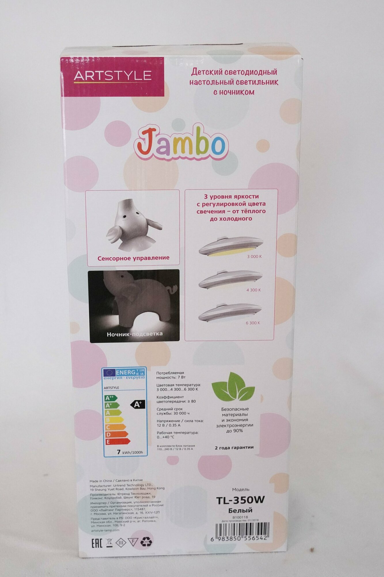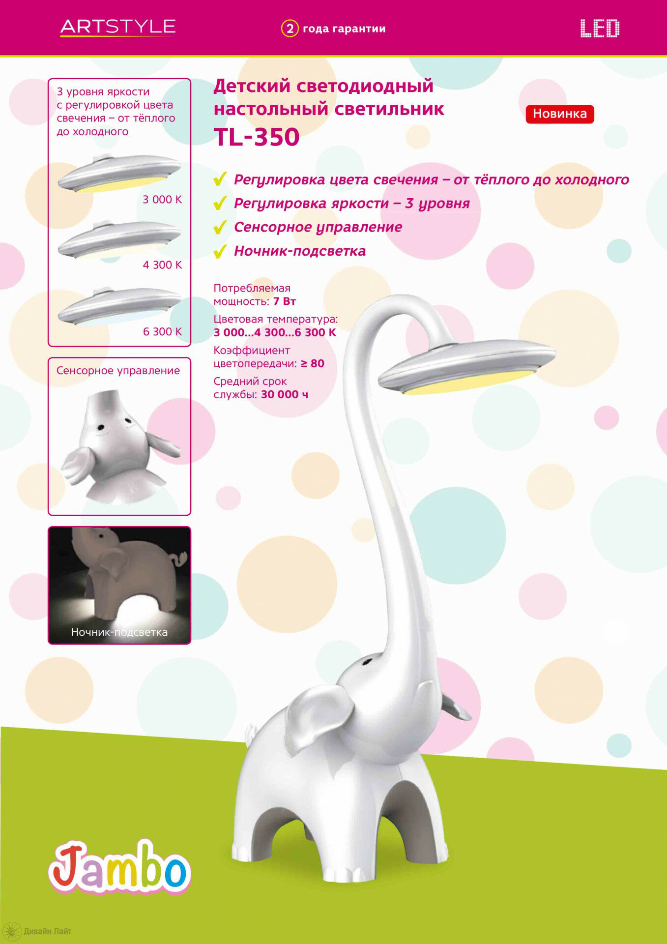 Светильник настольный светодиодный ARTSTYLE TL-350W белый, "слоненок Jambo", 7Вт