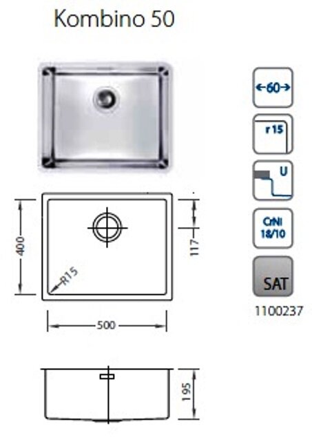 Мойка KOMBINO 50 SAT-90 500X400X195
