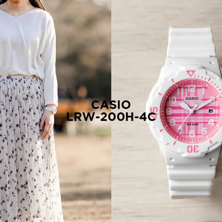 Наручные часы CASIO LRW-200H-4C, белый, розовый