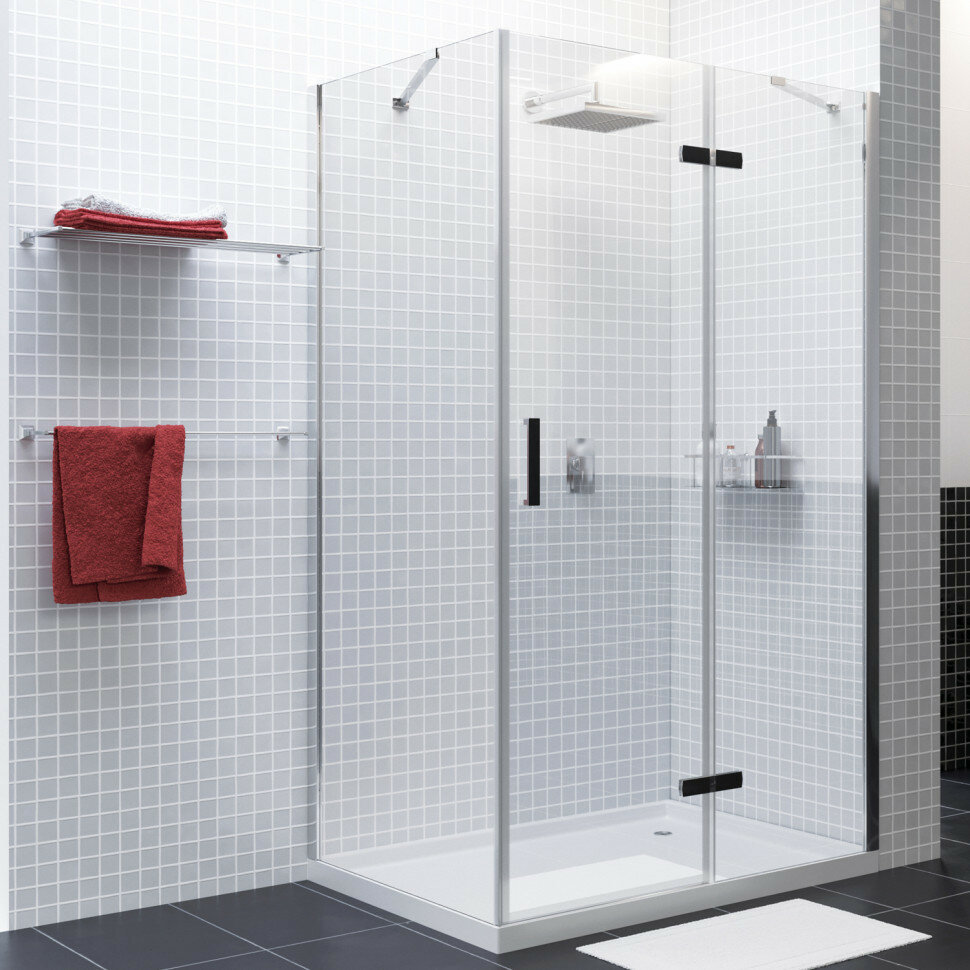 Душевой уголок Wasserkraft Aller 120х90 10H07RBLACK без поддона, стекло прозрачное, профиль хром, петли черные
