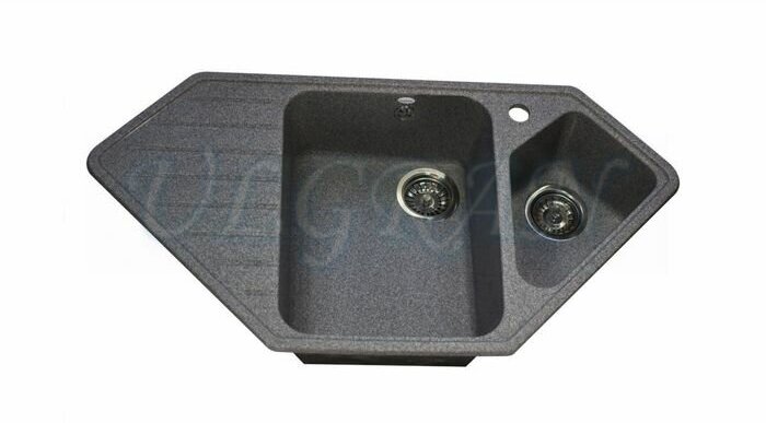Мойка кухонная Ulgran из искусственного мрамора многоугольная U-409, цвет: графит, база: 94.5х47.5 см, арт. U-409-342
