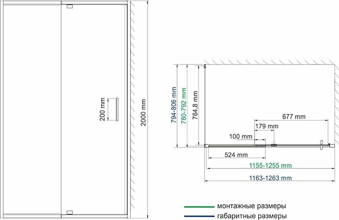 Душевой уголок 116-126х80 см прозрачное стекло WasserKRAFT BERKEL 48P06