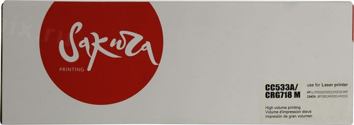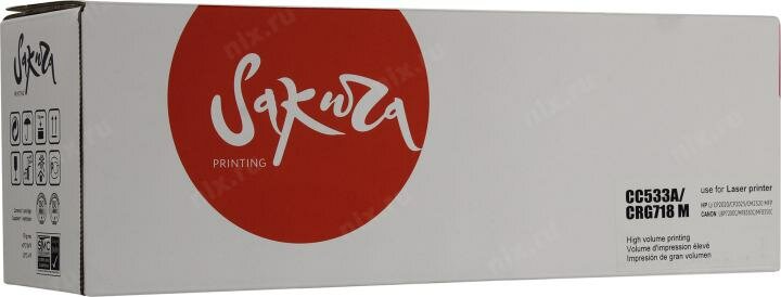 Картридж SAKURA CC533A/CRG718M для HP, Canon, пурпурный, 2800 к. LJ CM2320fxiMFP/LJ CM2320nMFP/LJ CM2320nfMFP/LJ CP2025/LJ CP2025n/LJ CP2025dn/LJ CP2025x/LBP7200/7200cn/iCMF8330/8350Cdn