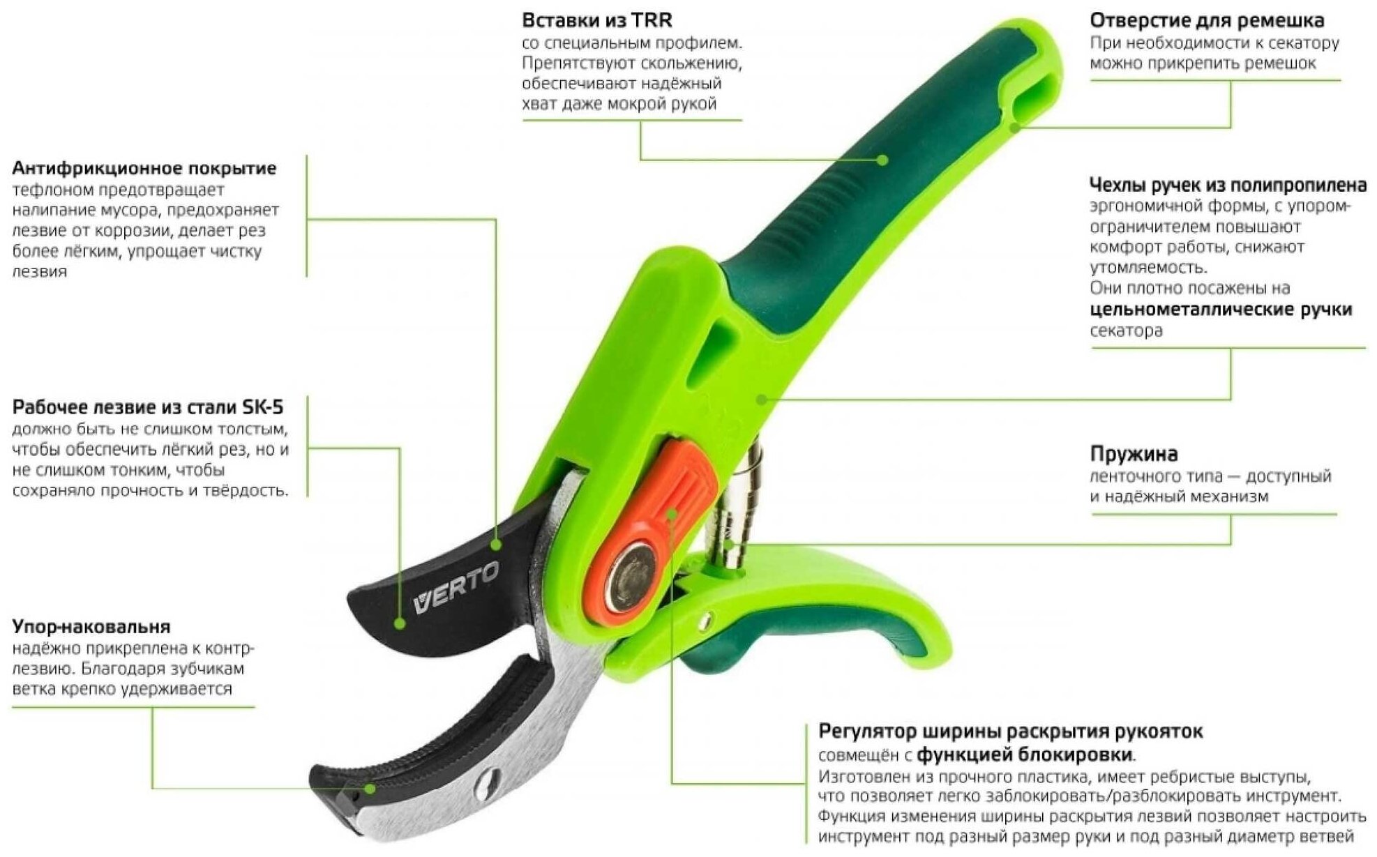 Секатор садовый контактн. диаметр резки 12мм Verto интересное: