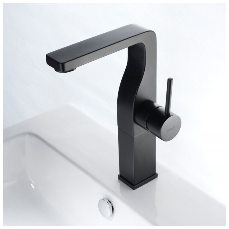 Bravat F16061K-A2-ENG Arc Смеситель для умывальника высокий, черный матовый