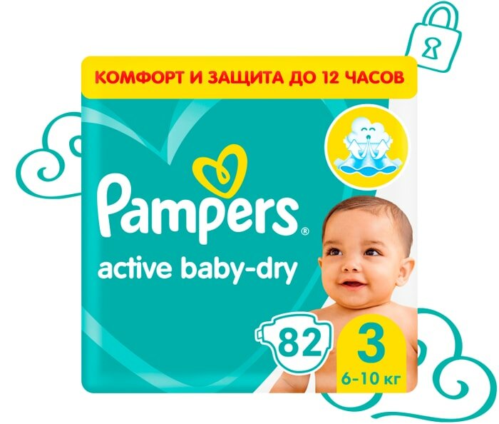 Подгузники Pampers Active Baby-Dry, 6-10 кг, размер 3, 82 шт