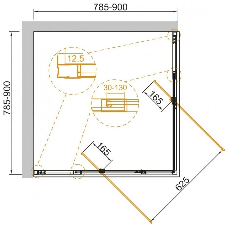 | Дополнительная информация | конструкция петли позволяет регулировать ширину входа душевого ограждения в диапазоне 10 см |