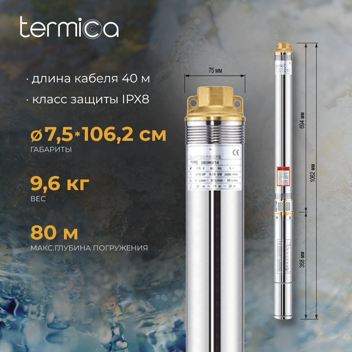 Скважинный насос Termica 40 м 3SQ 3/90