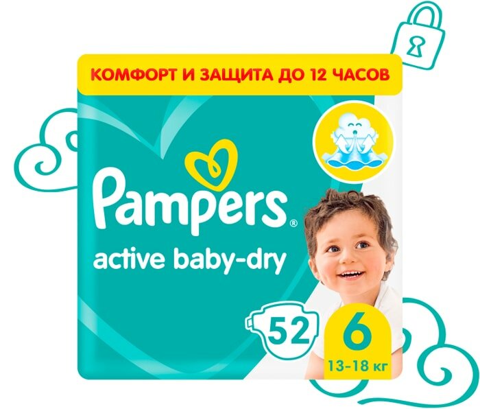 Подгузники Pampers Active Baby-Dry 13–18 кг, размер 6, 52 шт. интересное:
