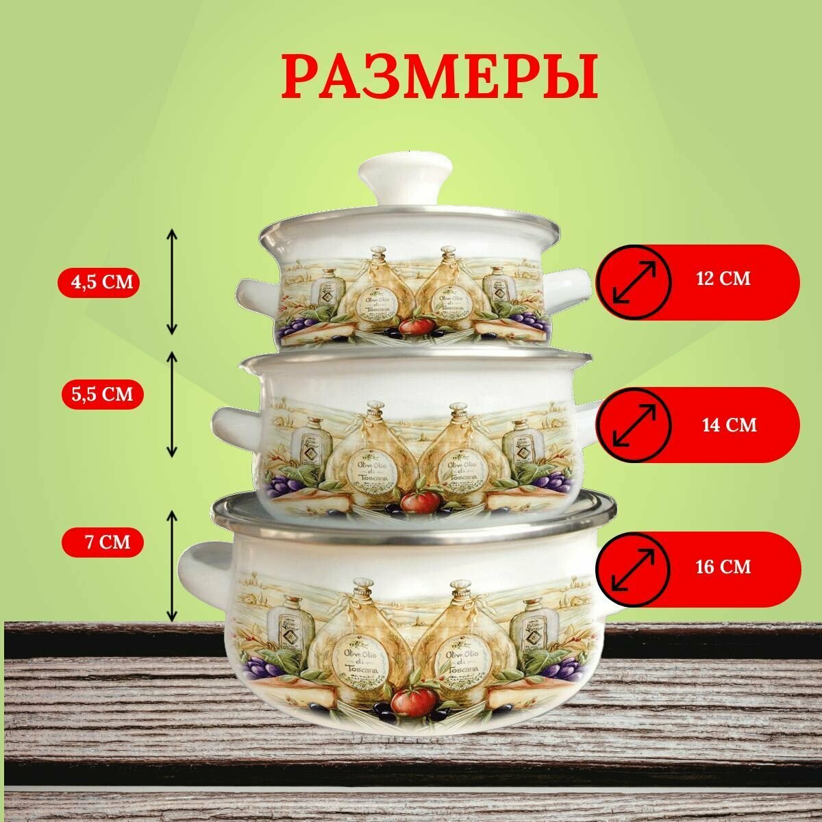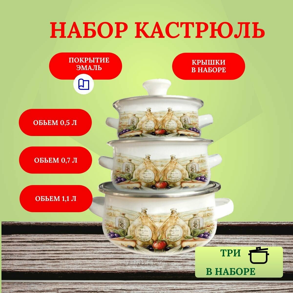 Набор посуды Kelli KL-4119 Эмаль 6 предметов 0,5л 0,7л 1,1л
