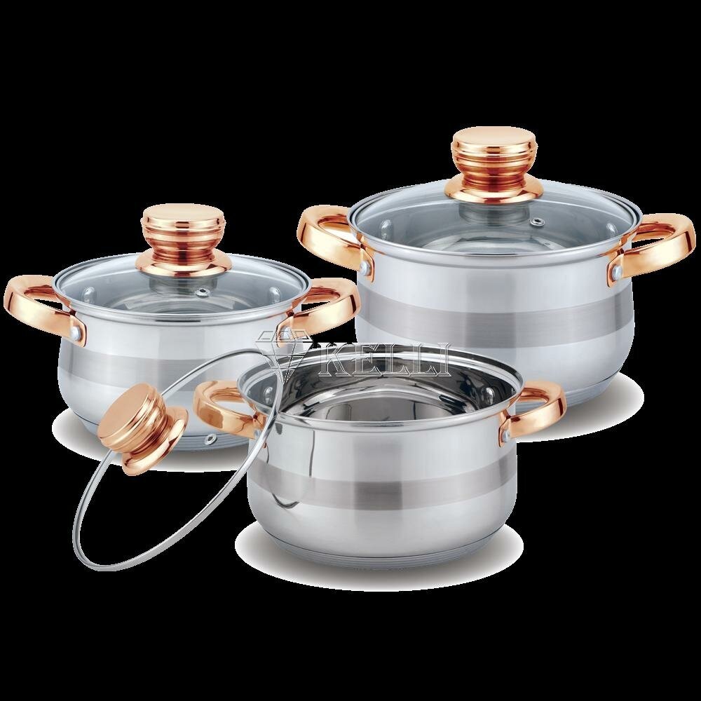 Набор кастрюль KELLI KL-4297 6 предметов, серебристый/золотой