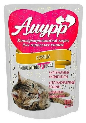 Корм для кошек влажный Амурр, полнорационный Курица в соусе 100 гр 24 шт