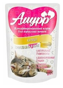 Консервы Амурр "Курица" для кошек кусочки в соусе 100г (Упаковка 24шт)