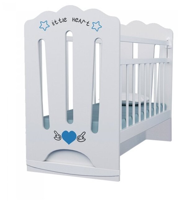 Кровать детская Little Heart маятник с ящиком (белый) (1200х600)