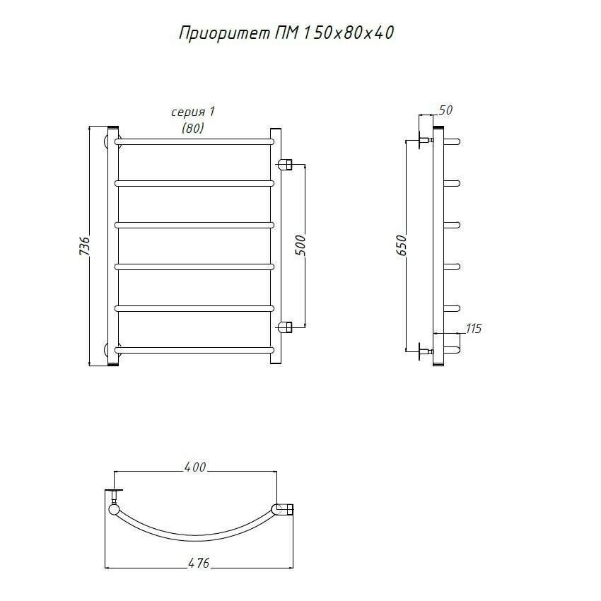 Полотенцесушитель водяной Тругор Приоритет ПМ 1 50*80*40 (ЛЦ2)