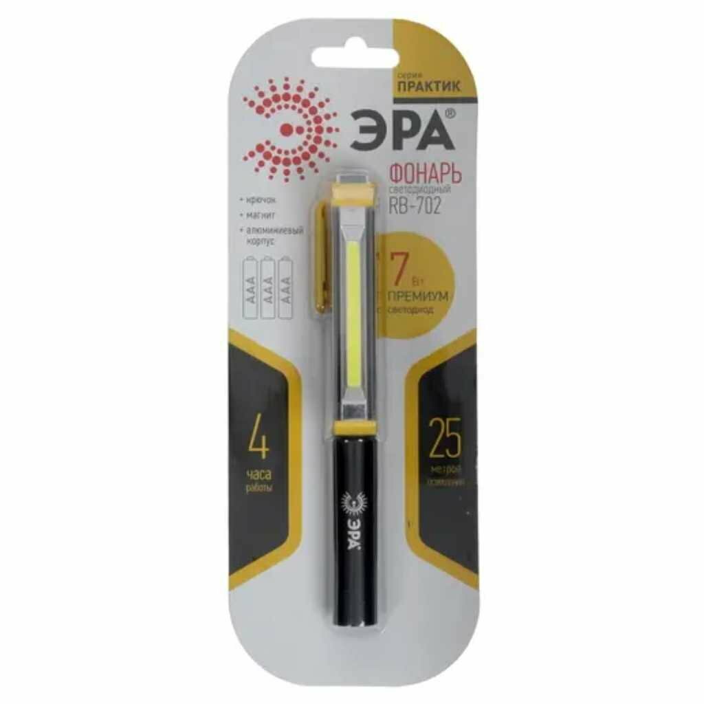 Фонарь светодиодный ЭРА RB-702 серия "Практик" 7Вт COB, 3xAAA, Al корпус, крючок, магнит