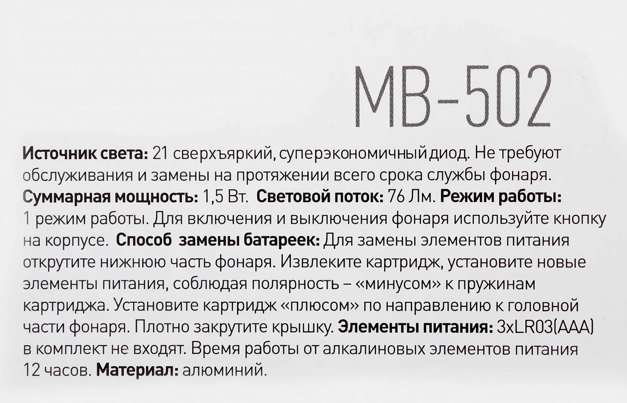 Фонарь "ЭРА" MB-502 ручной 3хААА алюминиевый Б0030194