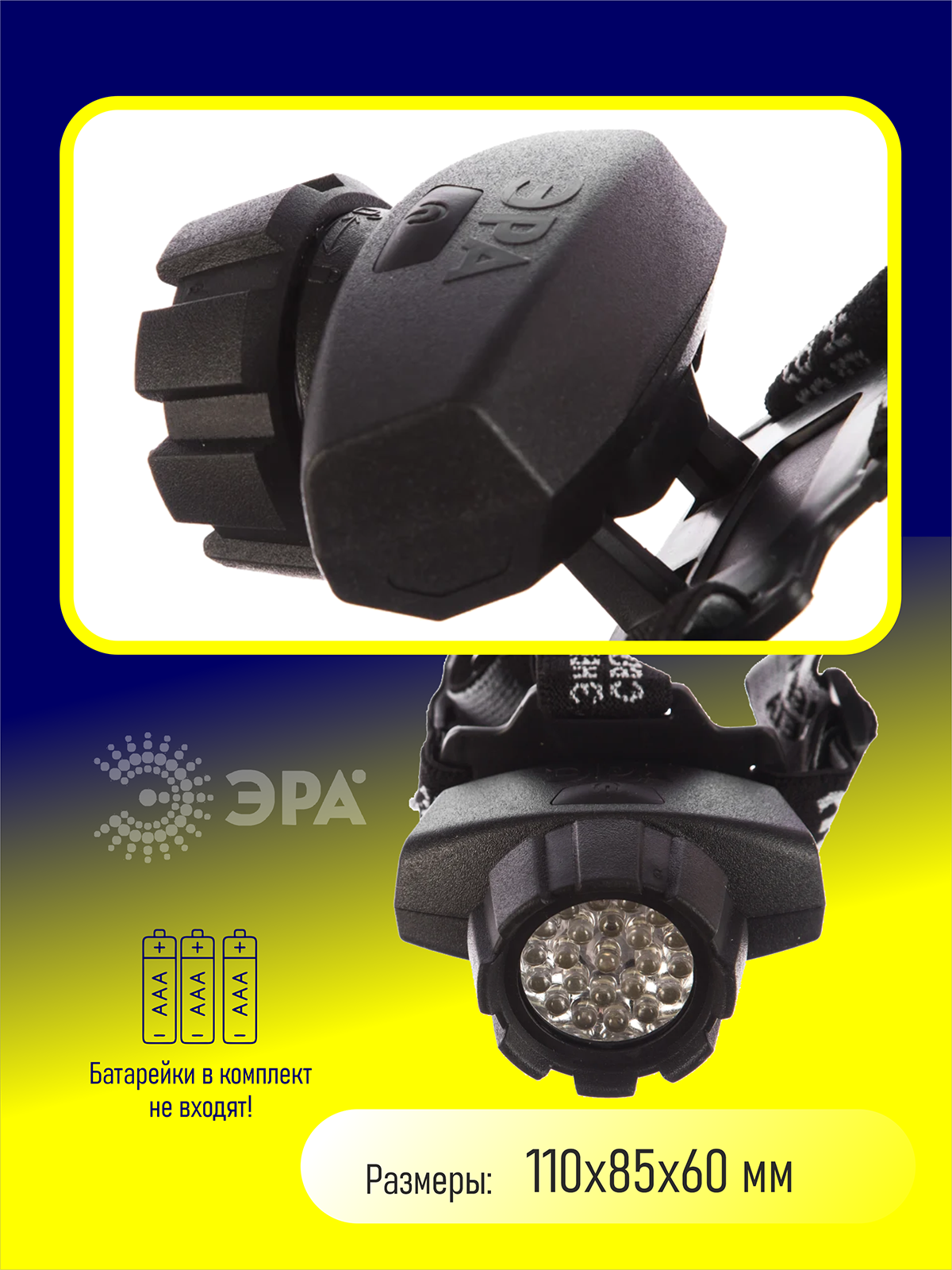 Фонарь налобный светодиодный ЭРА GB-605 на батарейках яркий 4 режима черный с регулировкой угла наклона