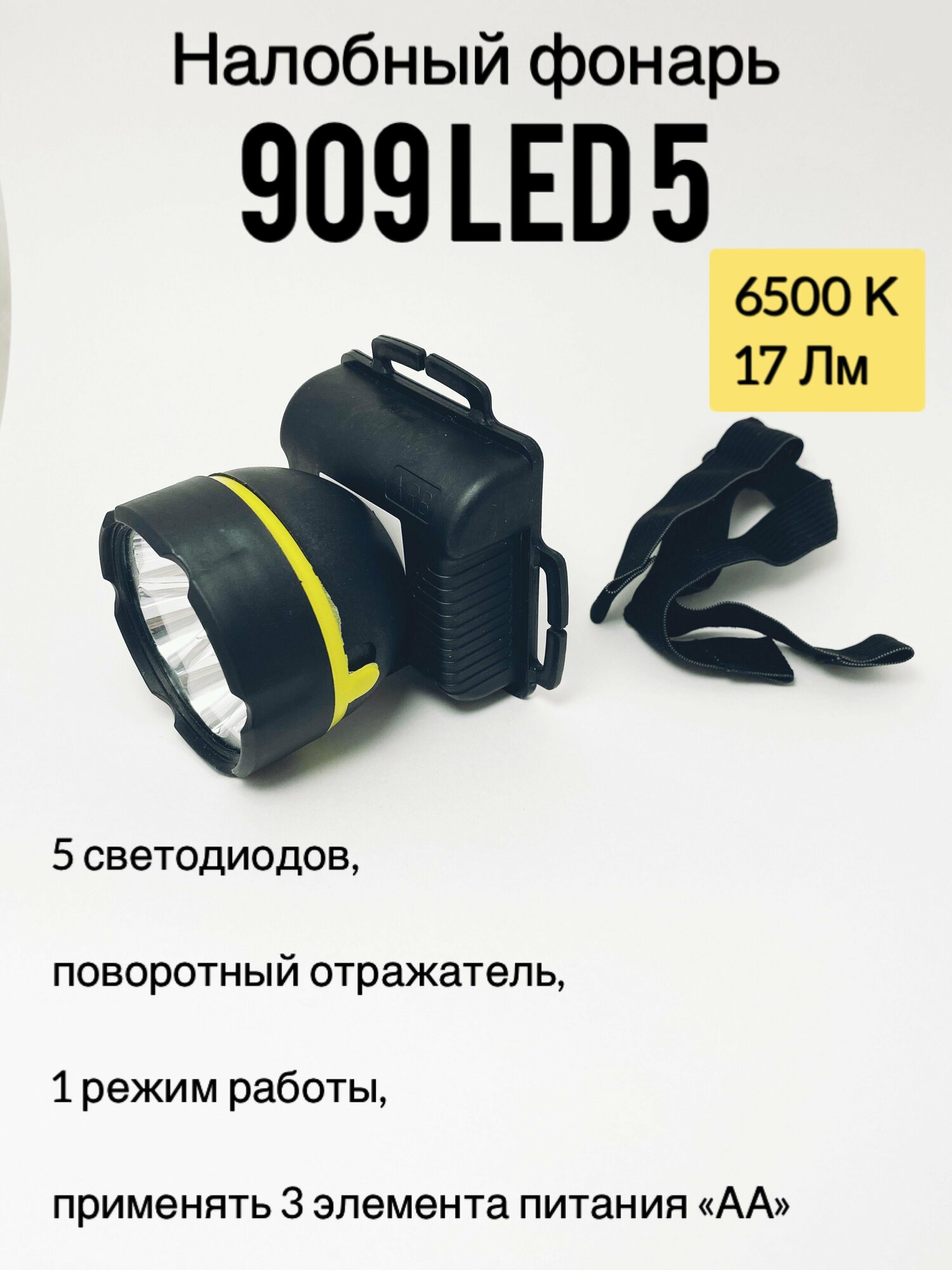 Фонарь 909LED5 налобный черный 5 светод., 1режим, 3xR6 Ultra Flash