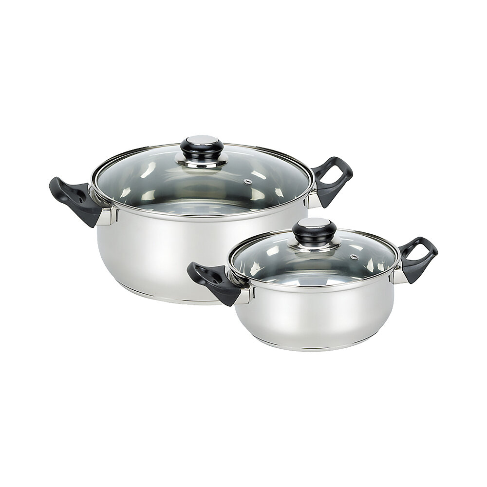 Набор посуды из 4 предметов BAKS-SET-4 из нерж стали (2 кастрюли с крышками - 2/2,8 л; 18/20 см-диа) .