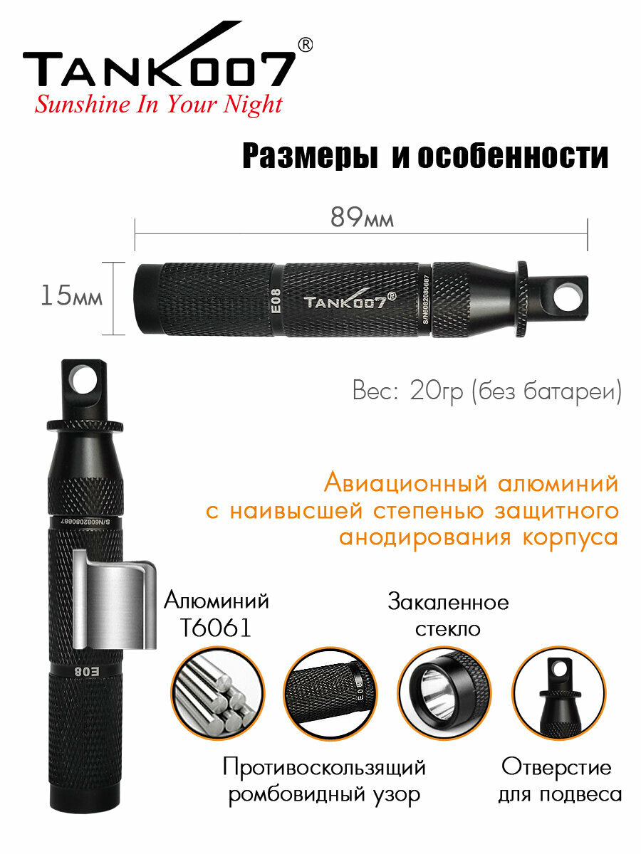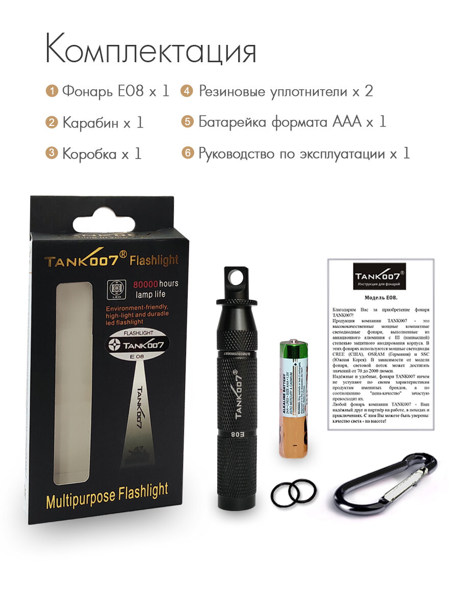 TANK007 E08 Светодиодный фонарь с комплектацией интересное: