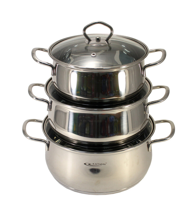 Набор Посуды Нерж 6ПР (2,2л,3,2л,4,2л) Лира (2) Катунь КТ-СР-002 .