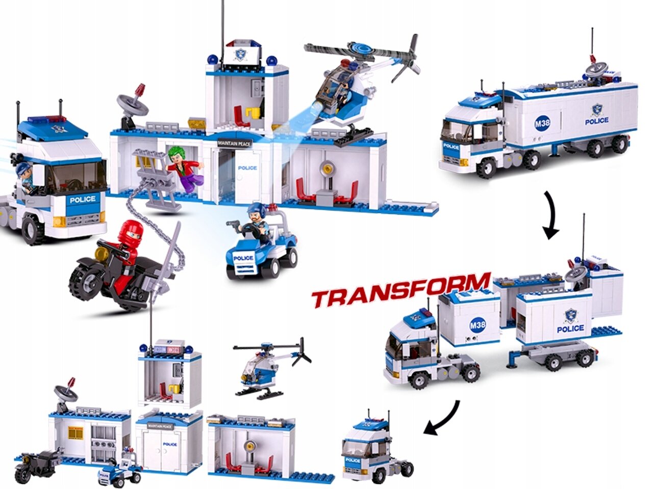 Конструктор пластик.SLUBAN.Полиция.Грузовик-трансформер полицейский.572 дет.5 фигур (Арт. M38-B0376)