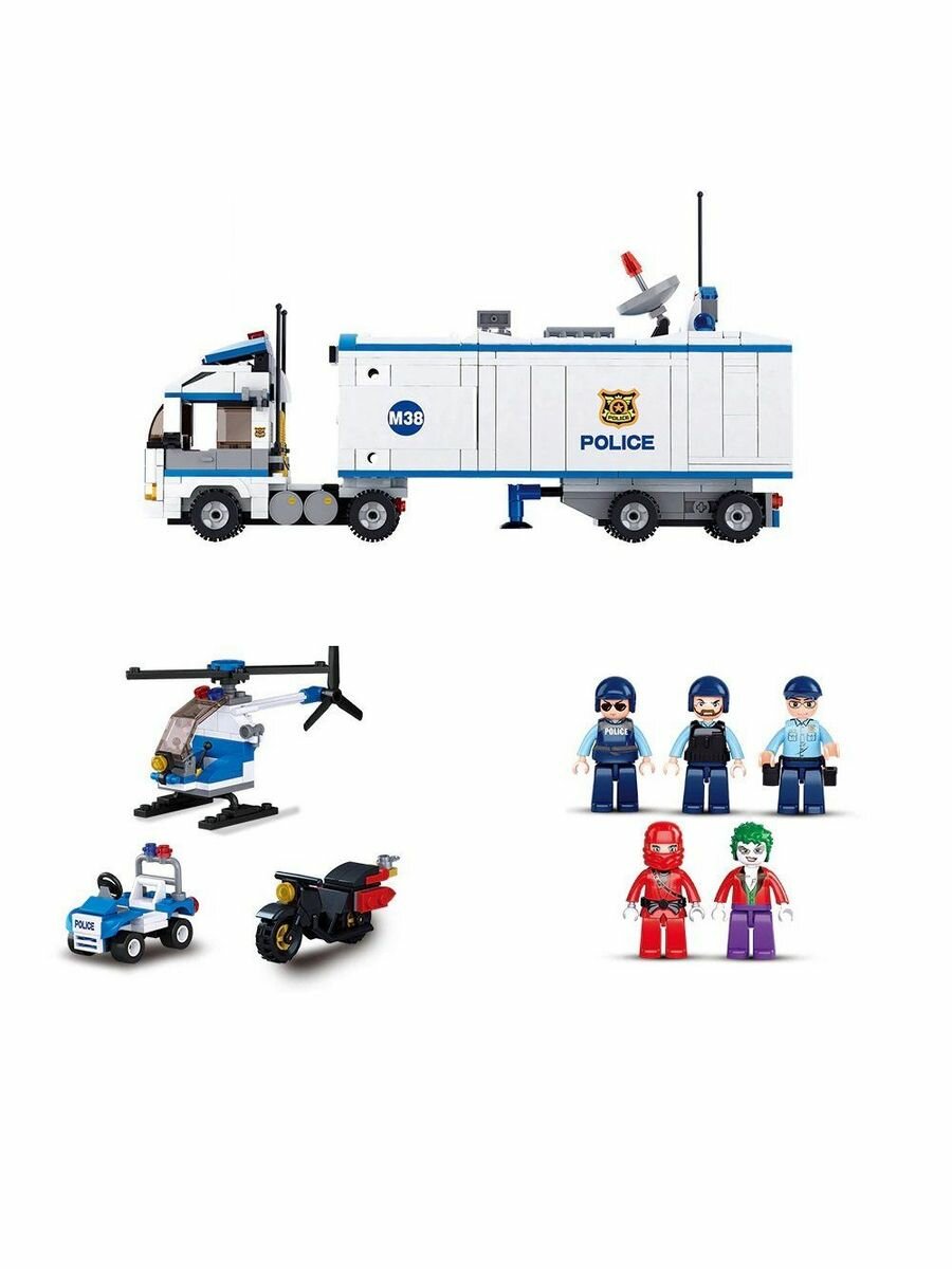 Конструктор пластик.SLUBAN.Полиция.Грузовик-трансформер полицейский.572 дет.5 фигур (Арт. M38-B0376)