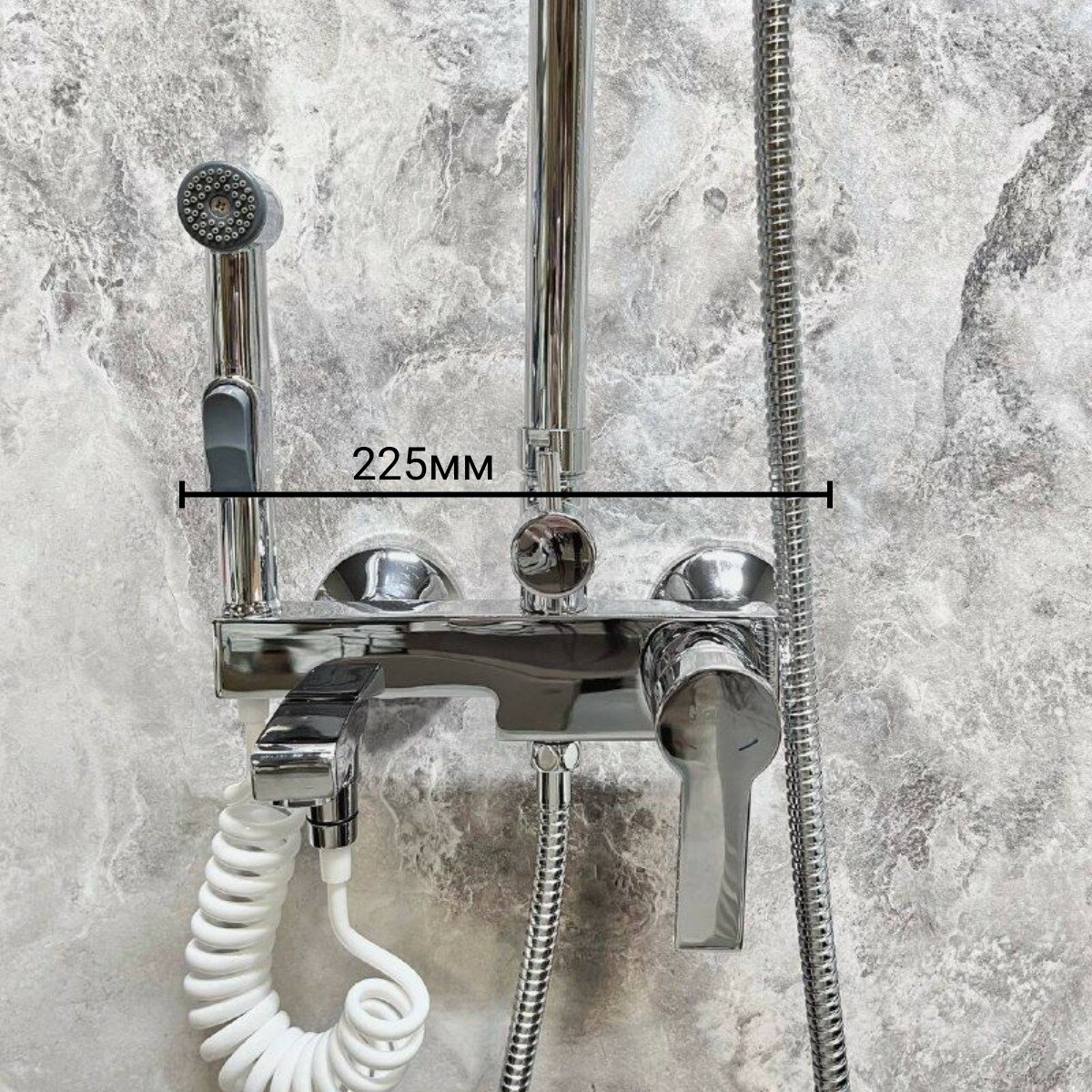 Душевая стойка c верхним тропическим душем и ручной лейкой и гигиеническим душем,цвет: хром