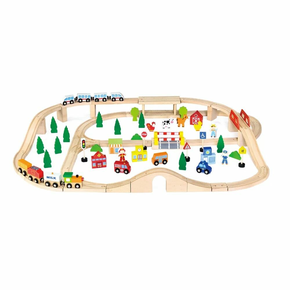VIGA Набор Железная дорога 90 деталей (дерево) VG50998 с 3 лет
