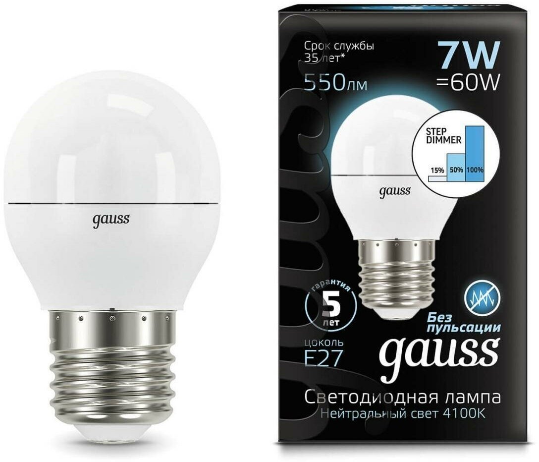 Лампа светодиодная Gauss 105102207 шар 6.5W E27 550Лм 4100К
