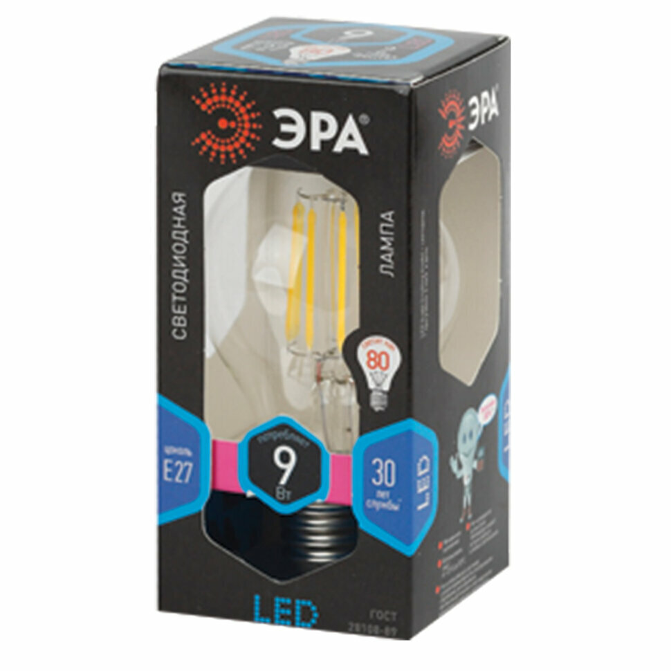 Лампа светодиодная Эра филаментная ЭРА, 9, 80 Вт, E27, грушевидная, холодный белый свет, 30000 ч