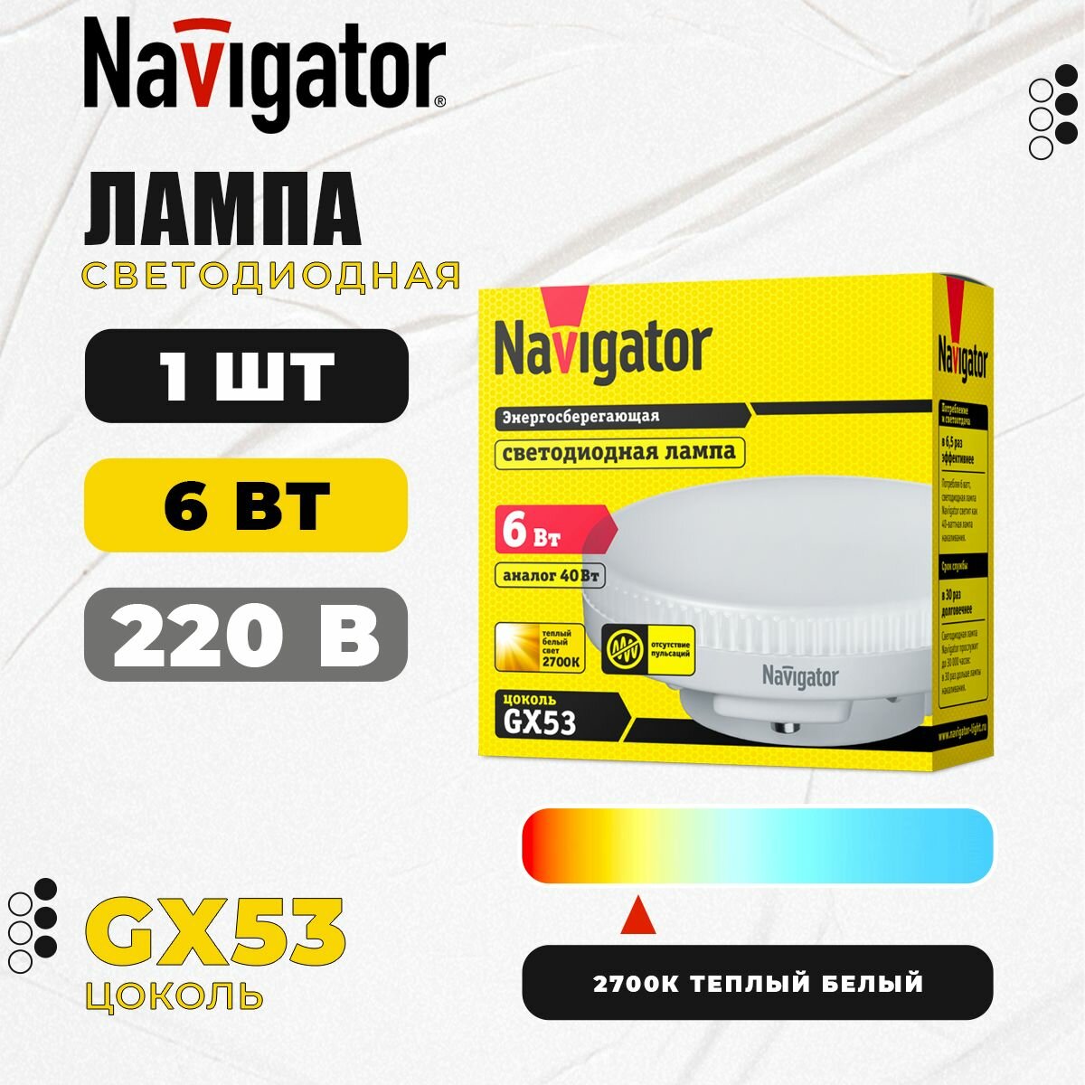 Светодиодная лампа NAVIGATOR GROUP 94 249 NLL-GX53-6-230-2.7K 6Вт таблетка 2700К тепл. бел. GX53 440лм 220-240В Navigator 94249