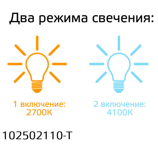 | Отзыв: | Лампы понравились, пользуемся два месяца, пока нареканий нет. По умолчанию, если не включать пол минуты, первым светом всегда загорается теплый (жёлтый оттенок). При перещелкивании (до полуминуты) -выключить/включить- загорится холодный (синий оттенок). |