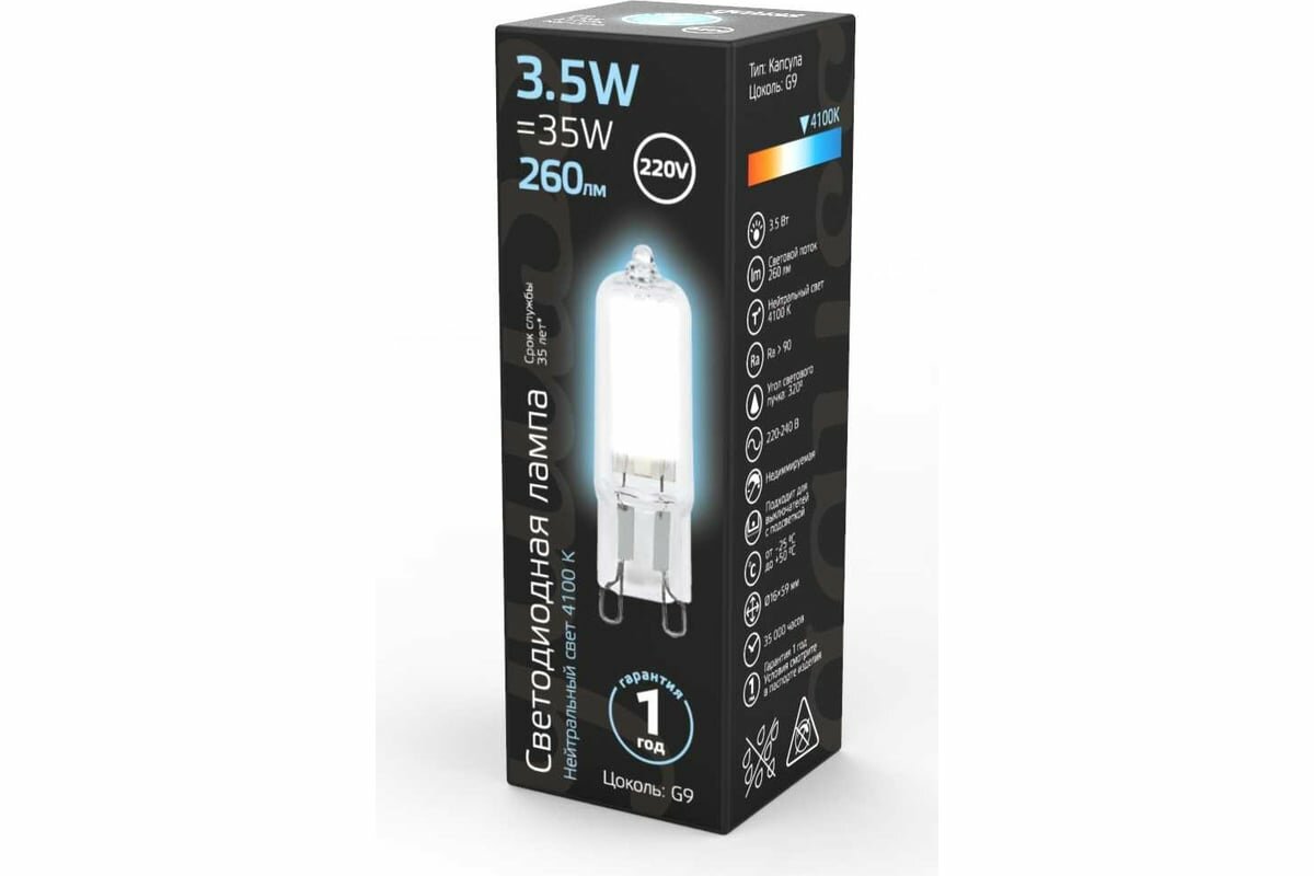 Лампа светодиодная gauss 107809203, G9, 3.5 Вт, 4100 К
