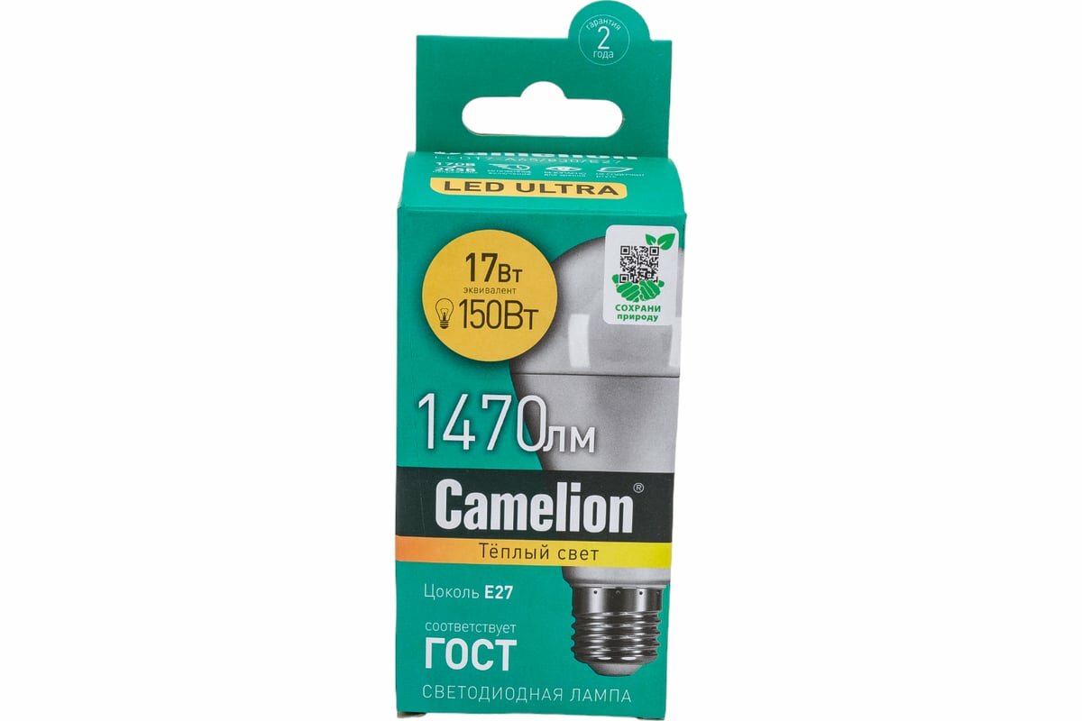 Лампа светодиодная E27, 17 Вт, 150 Вт, груша, 3000 К, свет теплый белый, Camelion