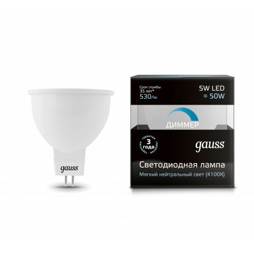 Набор из 5 штук Лампа Gauss MR16 5W 530lm 4100K GU5.3 диммируемая LED 1/10/100
