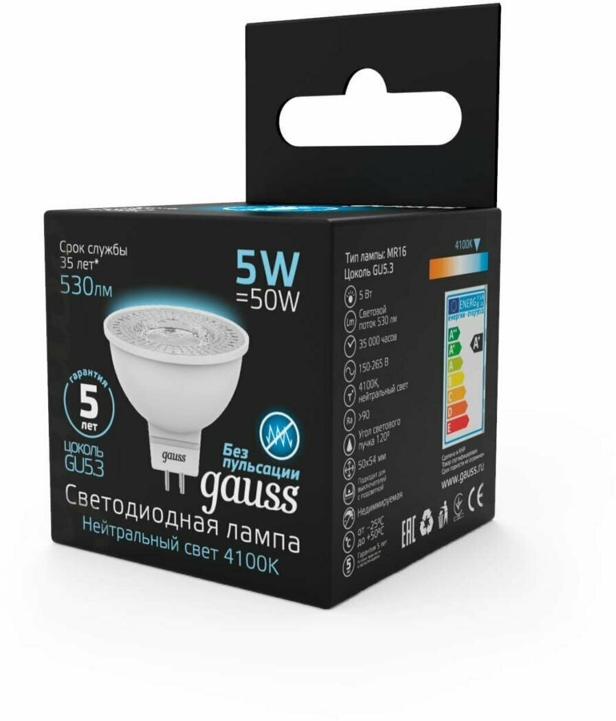 Gauss Лампа светодиодная Black 5Вт MR16 4100К нейтр. бел. GU5.3 530лм GAUSS 101505205