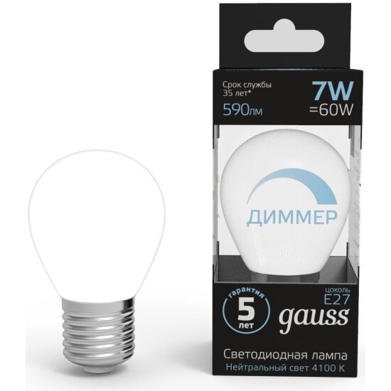 Светодиодная лампа Gauss LED Globe-dim E27 7W 4100К диммируемая интересное: