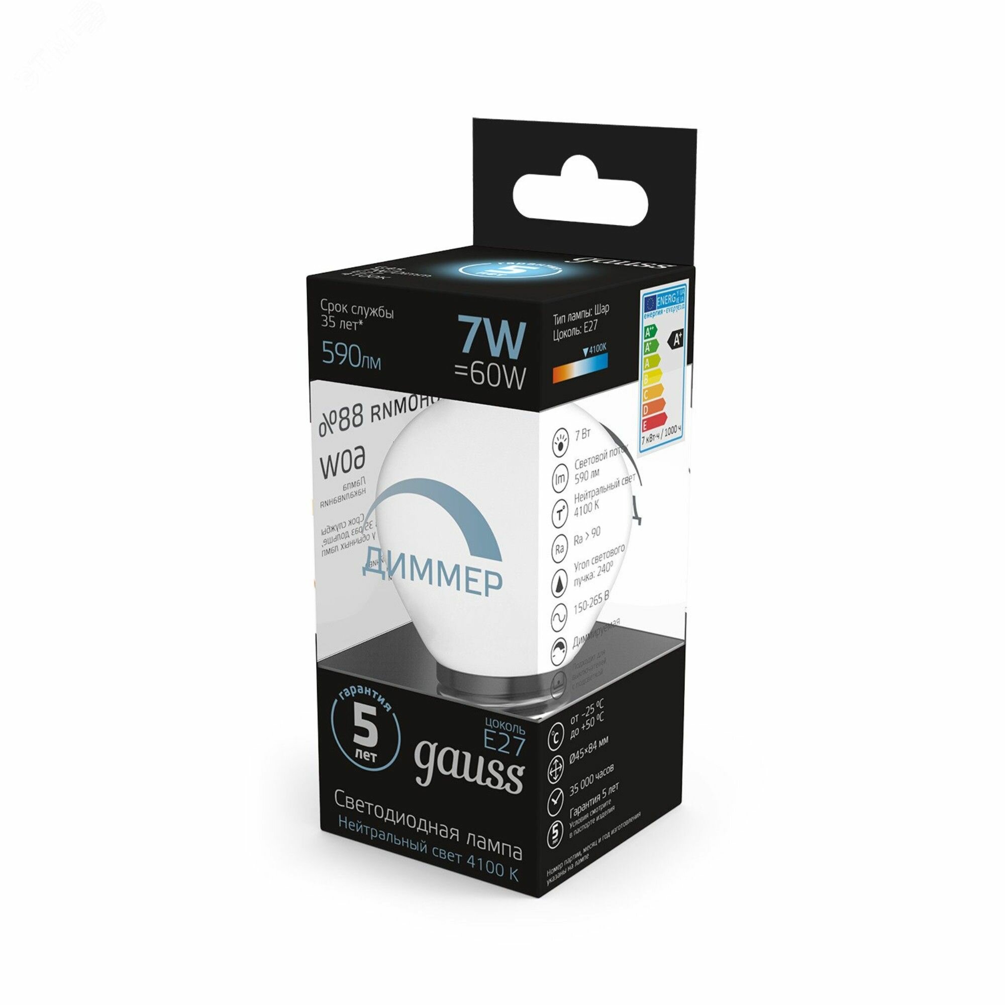 Лампа светодиодная gauss 105102207-D, E27, G45, 7 Вт, 4100 К