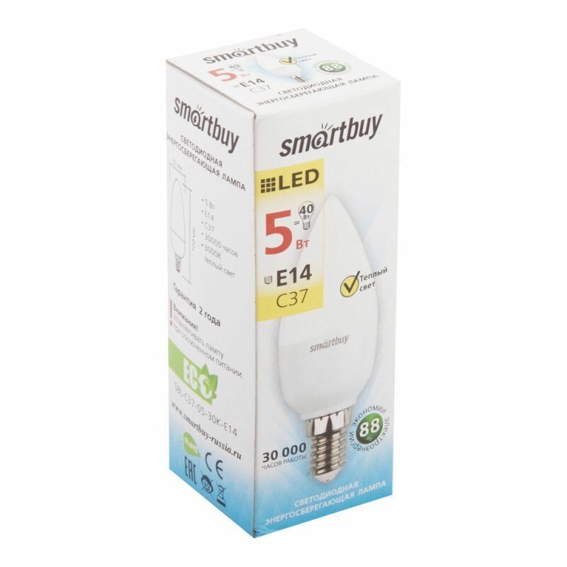 Лампочка SMARTBUY SBL-C37-05-30K-E14 E14, 5 Вт, белый