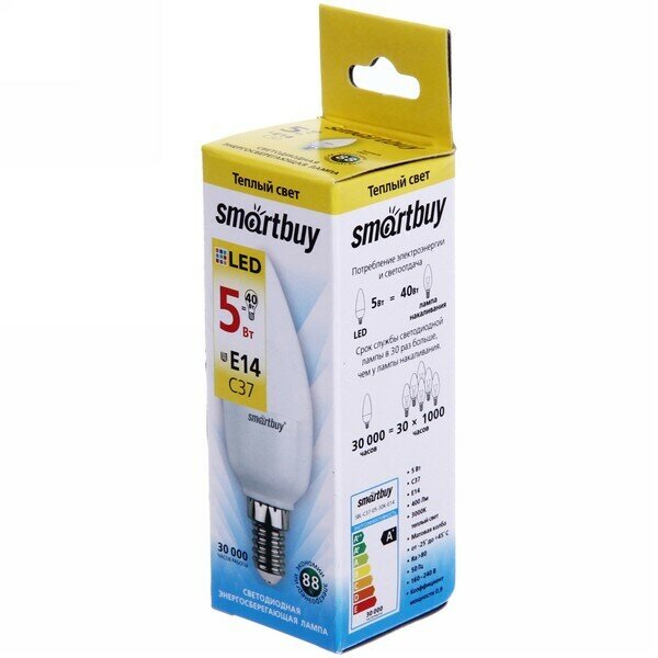 Светодиодная (LED) лампа Smart Buy SBL-C37-05-30K-E14 интересное: