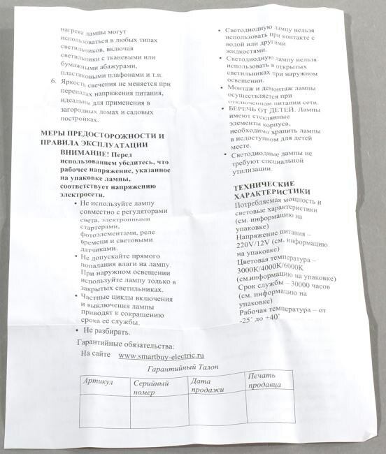 | Эквивалент лампы накаливания | 30 Вт |