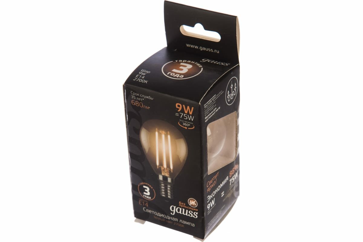 СохранитьGauss Лампа Filament Шар 9W 680lm 2700К Е14 LED интересное: