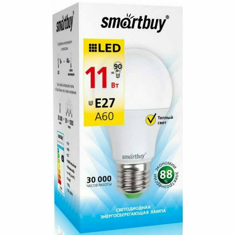 Лампа cветодиодная Smartbuy, A60, E27, 11 Вт, 3000 К, теплый белый свет